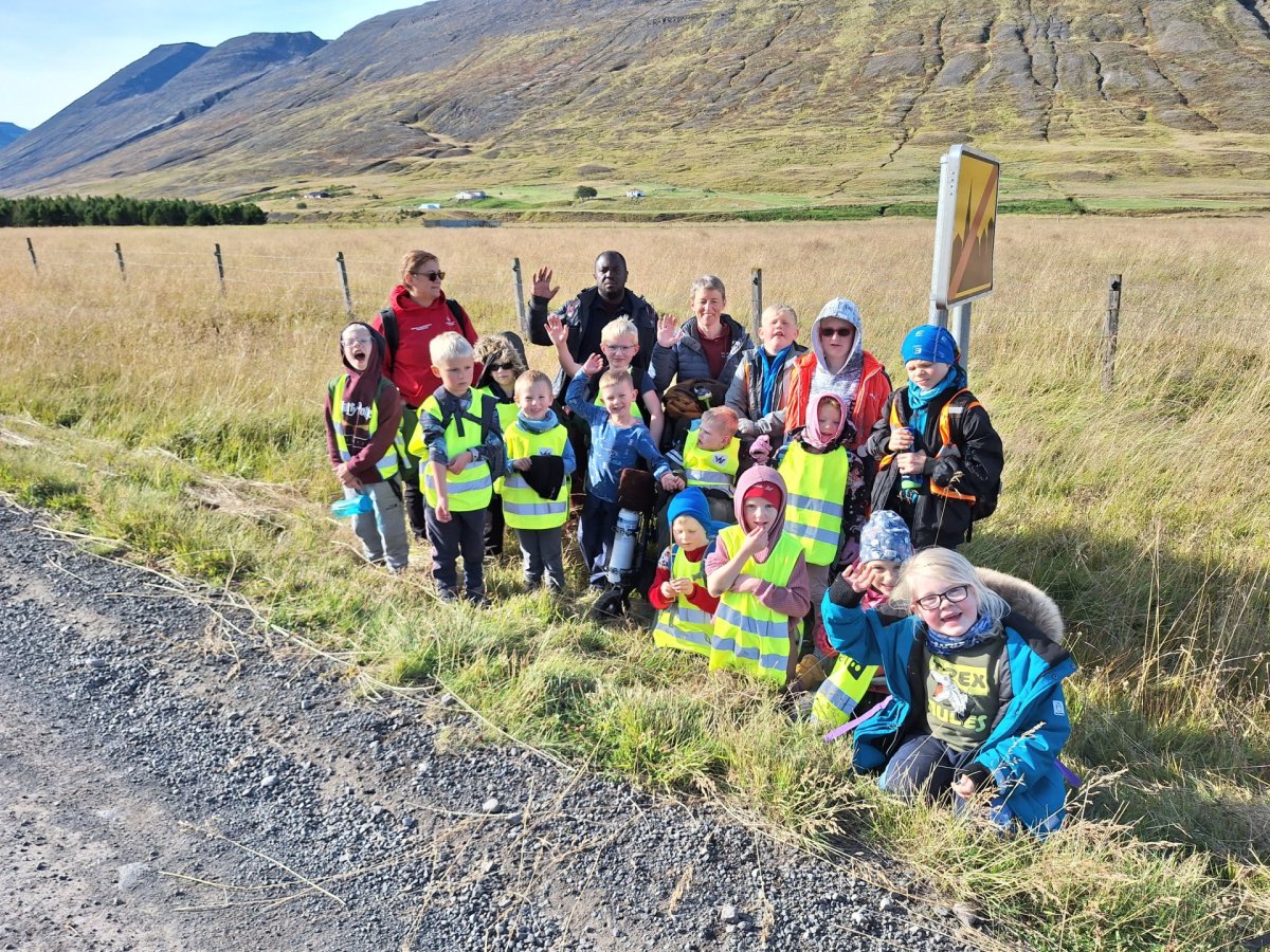 Miðvikudaginn 13. september fóru nemendur á starfsstöð skólans á Hólum í gönguferð með skólahóp leikskólans Tröllaborg á Hólum. Í göngunni fórum við að tjörninni inn af Hólum. Krakkarnir stóðu sig með stakri prýði að labba og vorum við virkilega heppin með veður. Gönguferðin er hluti af samstarfi leikskólans og grunnskólans á Hólum og er farið á hverju hausti í 3 - 4 klst gönguferð.